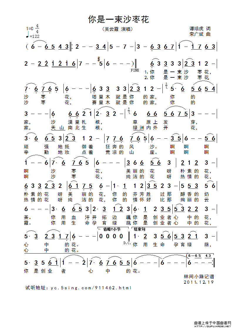 关于《你是一束沙枣花》曲谱的评论