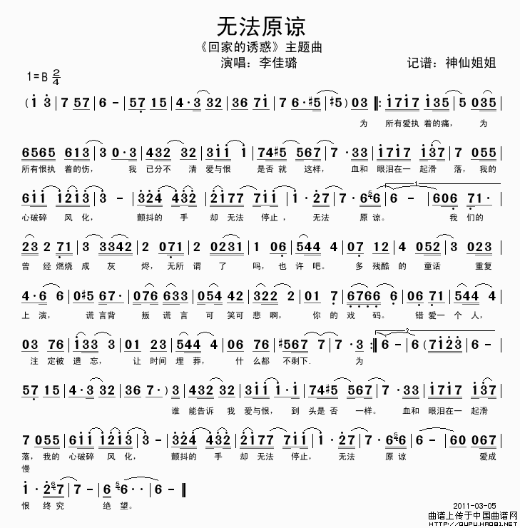 关于《无法原谅》曲谱的评论