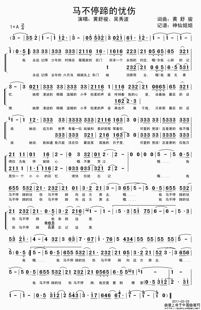 关于《马不停蹄的忧伤》曲谱的评论