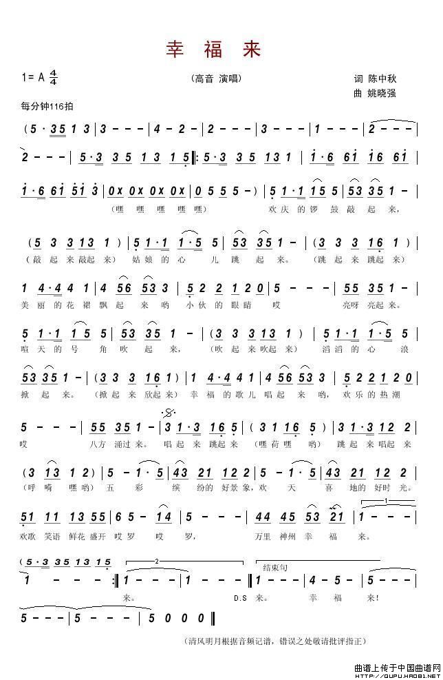 关于《幸福来》曲谱的评论