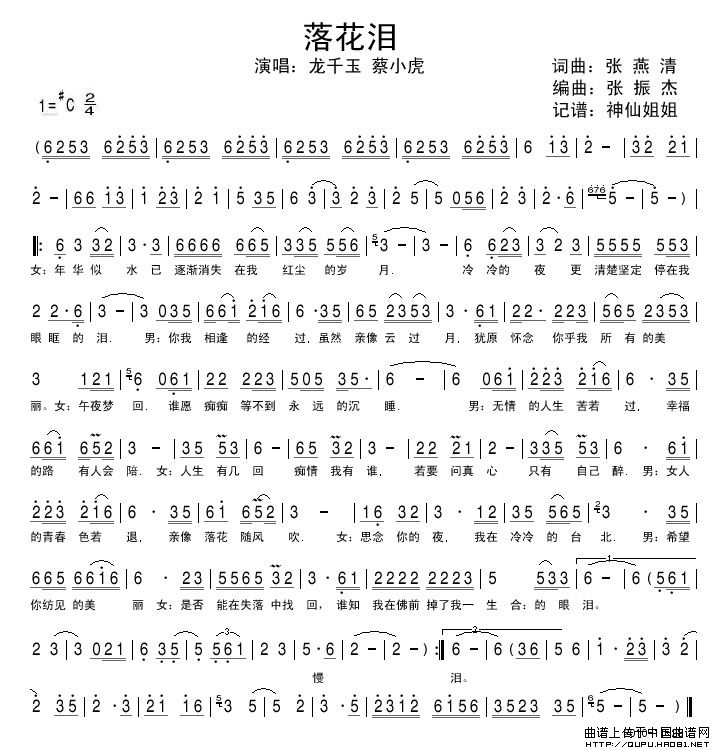 作词:张燕清   作曲:张振杰   演唱(奏):龙千玉、 蔡小虎   格式:简谱   来源:神仙姐姐记谱   上传:神仙姐姐   日期:2012-01-05   浏览次数: