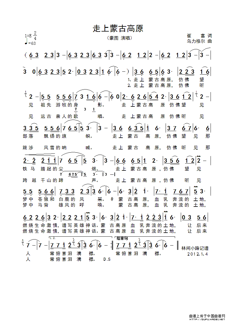 关于《走上蒙古高原》曲谱的评论
