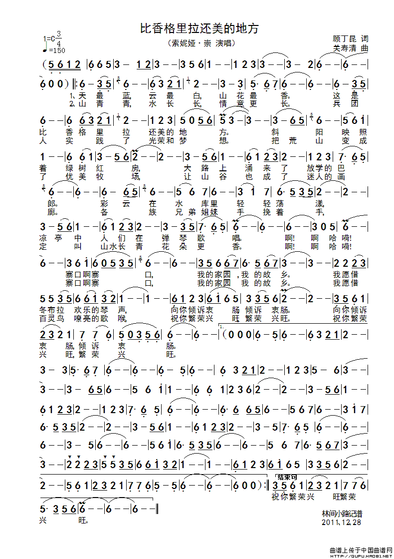 关于《比香格里拉还美的地方》曲谱的评论