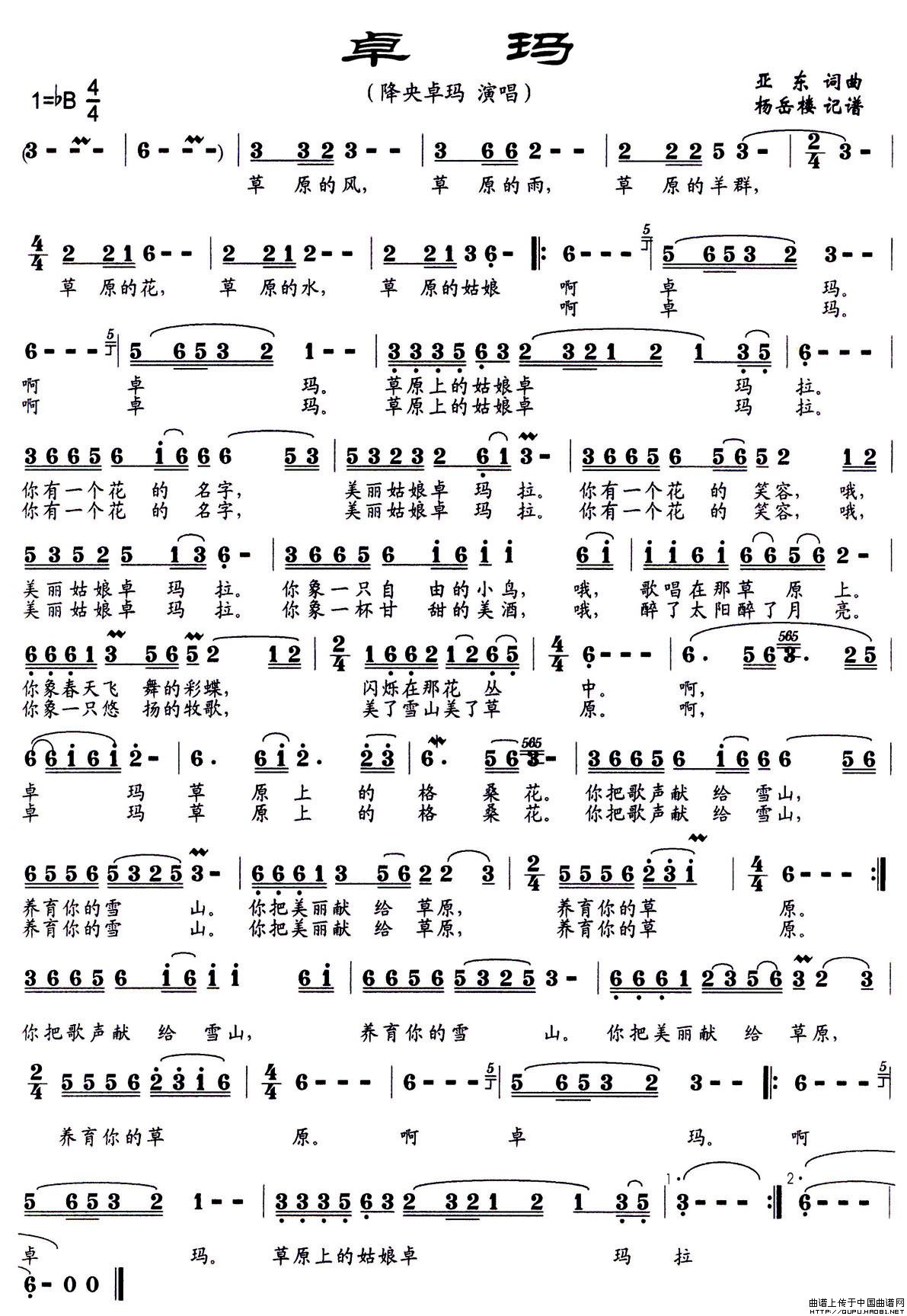 喜欢《卓玛》这首歌,为中国曲谱网点赞。 [回复]