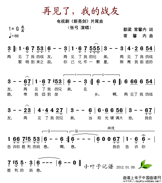 演唱(奏):张弓 格式:简谱 来源:小叶子记谱 上传:~金沙浪~