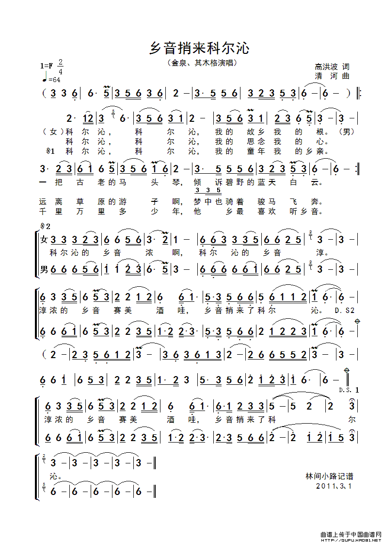 关于《乡音捎来科尔沁》曲谱的评论