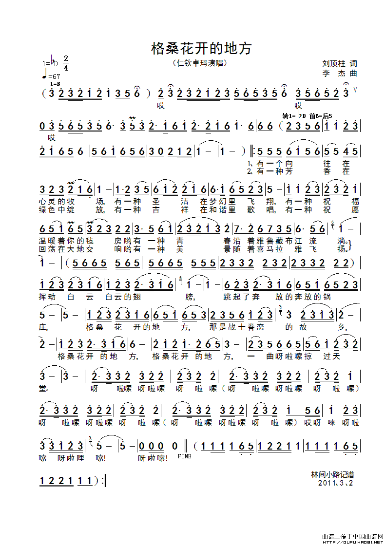 关于《格桑花开的地方》曲谱的评论