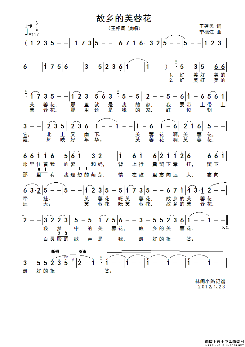 提示:在曲谱图片上单击右键,选择“图片另存为...”即可将曲谱保存到您的电脑中,打印时候可将图片插入到WORD中,调整合适大小打印即可。