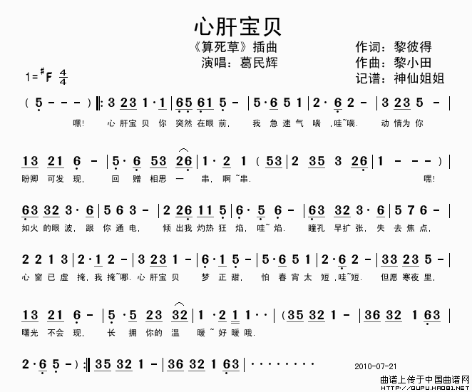 关于《心肝宝贝》曲谱的评论