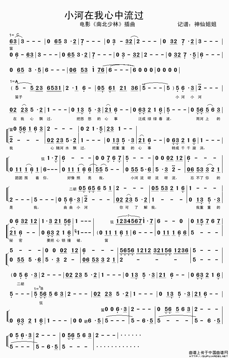 小河在我心中流过(电影《南北少林》插曲)