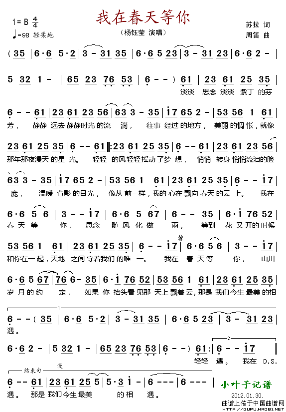 关于《我在春天等你》曲谱的评论