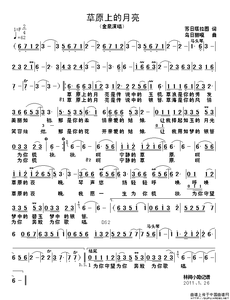 关于《草原上的月亮》曲谱的评论
