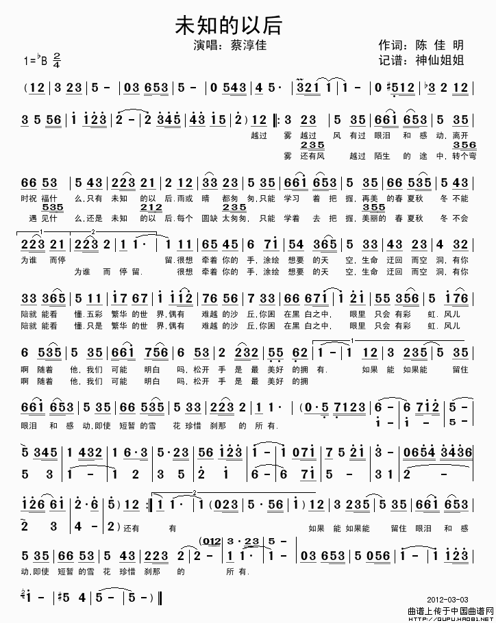 关于《未知的以后》曲谱的评论