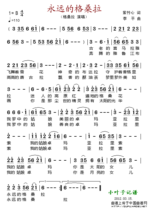 提示:在曲谱图片上单击右键,选择“图片另存为...”即可将曲谱保存到您的电脑中,打印时候可将图片插入到WORD中,调整合适大小打印即可。