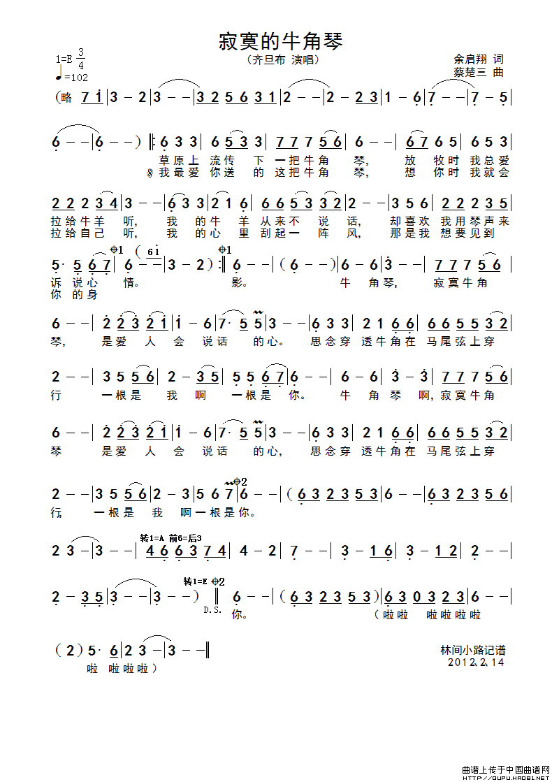提示:在曲谱图片上单击右键,选择“图片另存为...”即可将曲谱保存到您的电脑中,打印时候可将图片插入到WORD中,调整合适大小打印即可。