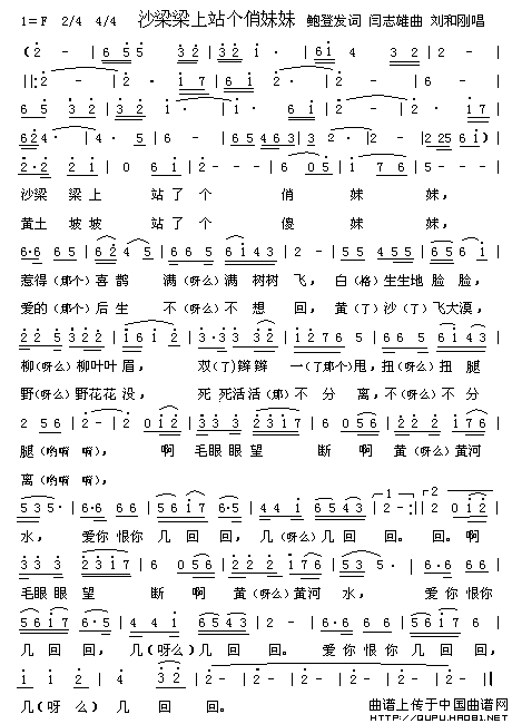 关于《沙梁梁上站个俏妹妹》曲谱的评论