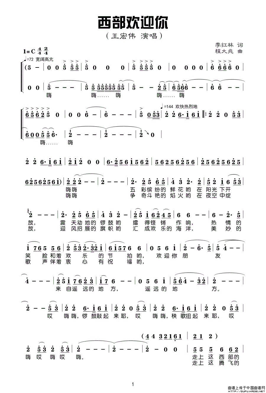 关于《西部欢迎你》曲谱的评论