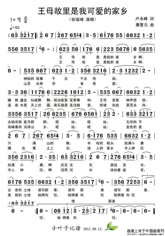 关于《王母故里是我可爱的家乡》曲谱的评论