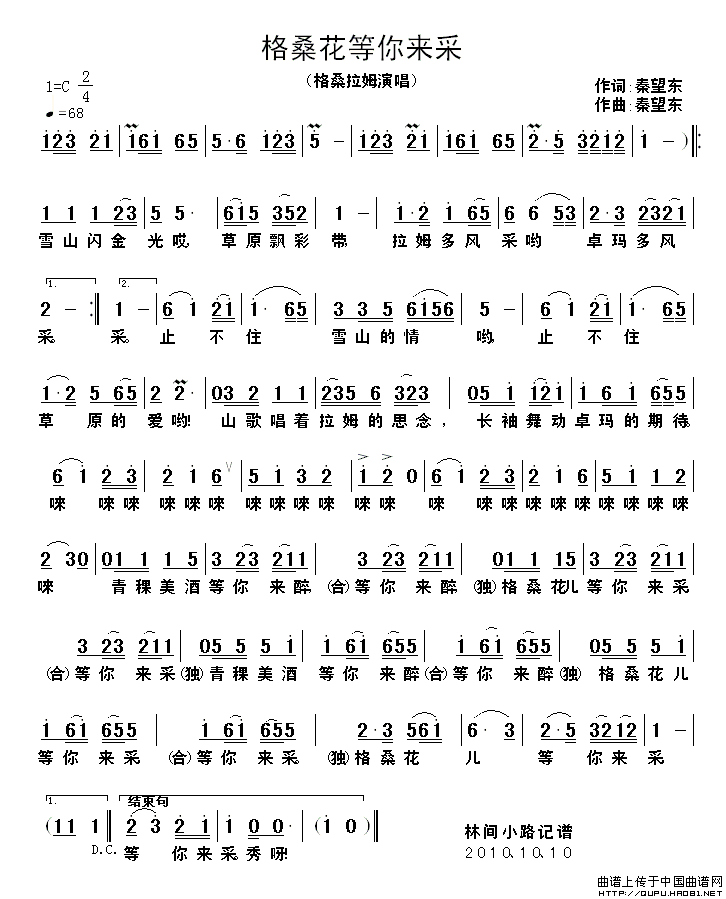 提示:在曲谱图片上单击右键,选择“图片另存为...”即可将曲谱保存到您的电脑中,打印时候可将图片插入到WORD中,调整合适大小打印即可。