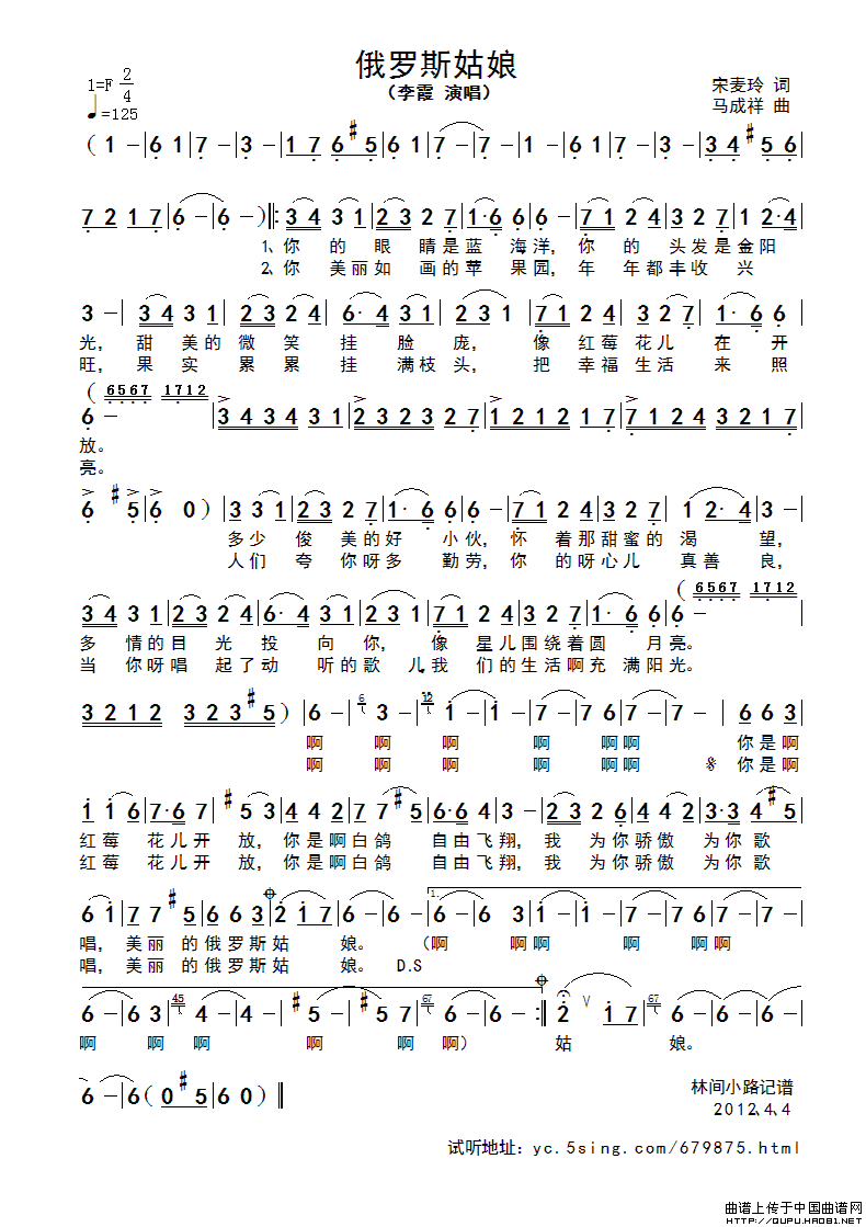 俄罗斯姑娘(宋麦玲词 马成祥曲)(1)_原文件名:俄罗斯姑娘1.gif