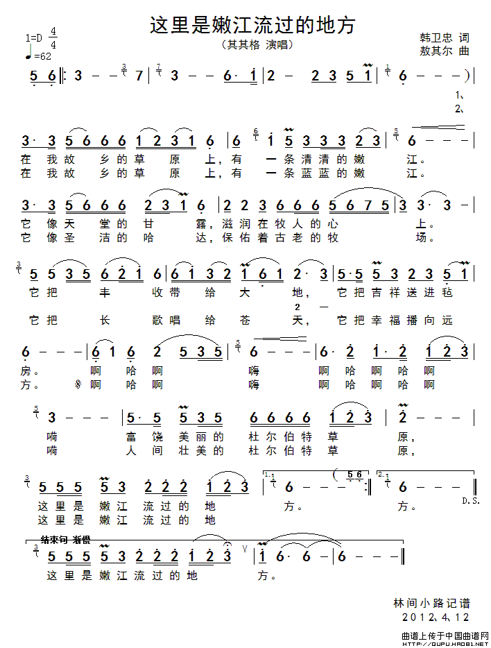 关于《这里是嫩江流过的地方》曲谱的评论