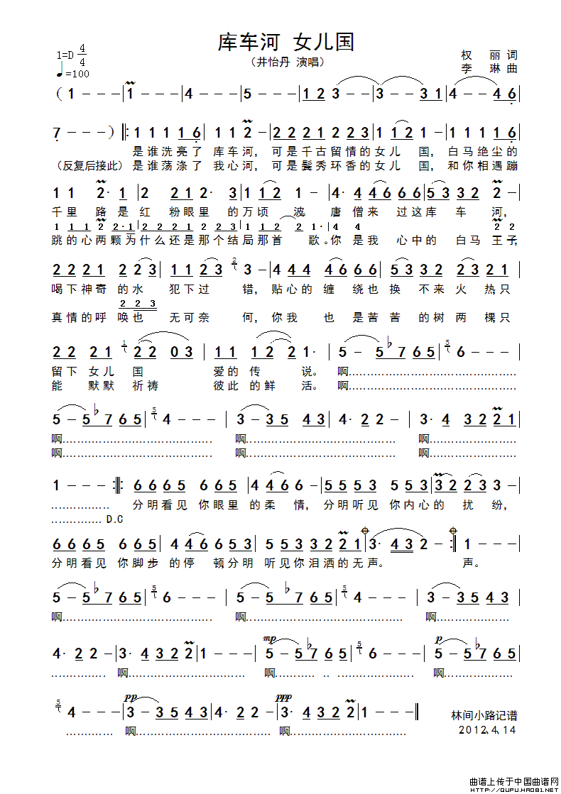 提示:在曲谱图片上单击右键,选择“图片另存为...”即可将曲谱保存到您的电脑中,打印时候可将图片插入到WORD中,调整合适大小打印即可。