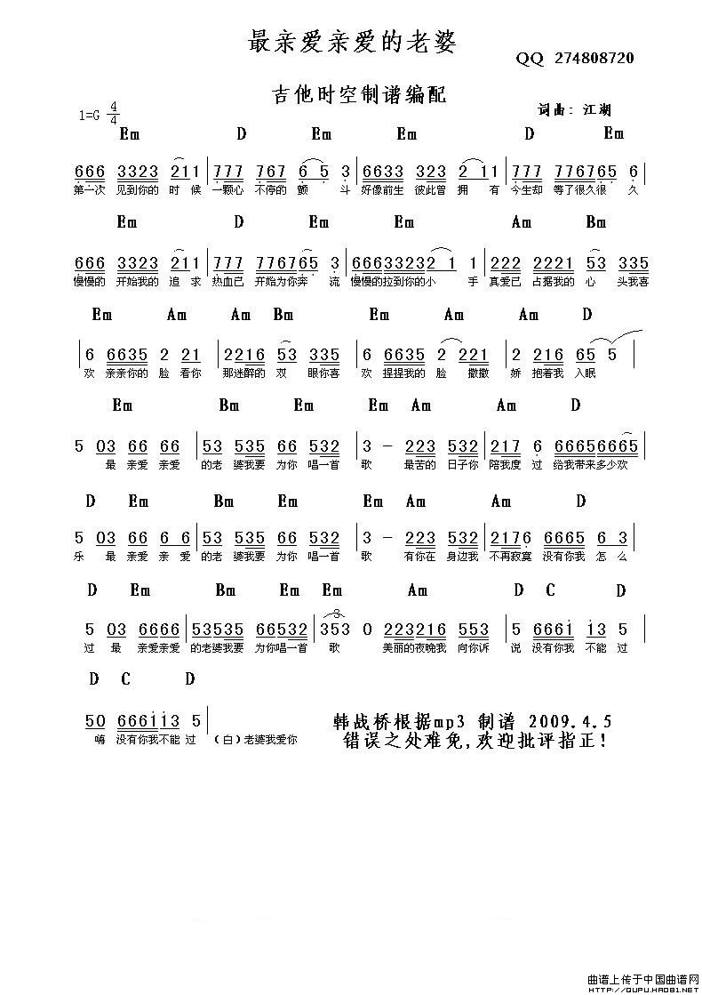 关于《最亲爱亲爱的老婆》曲谱的评论