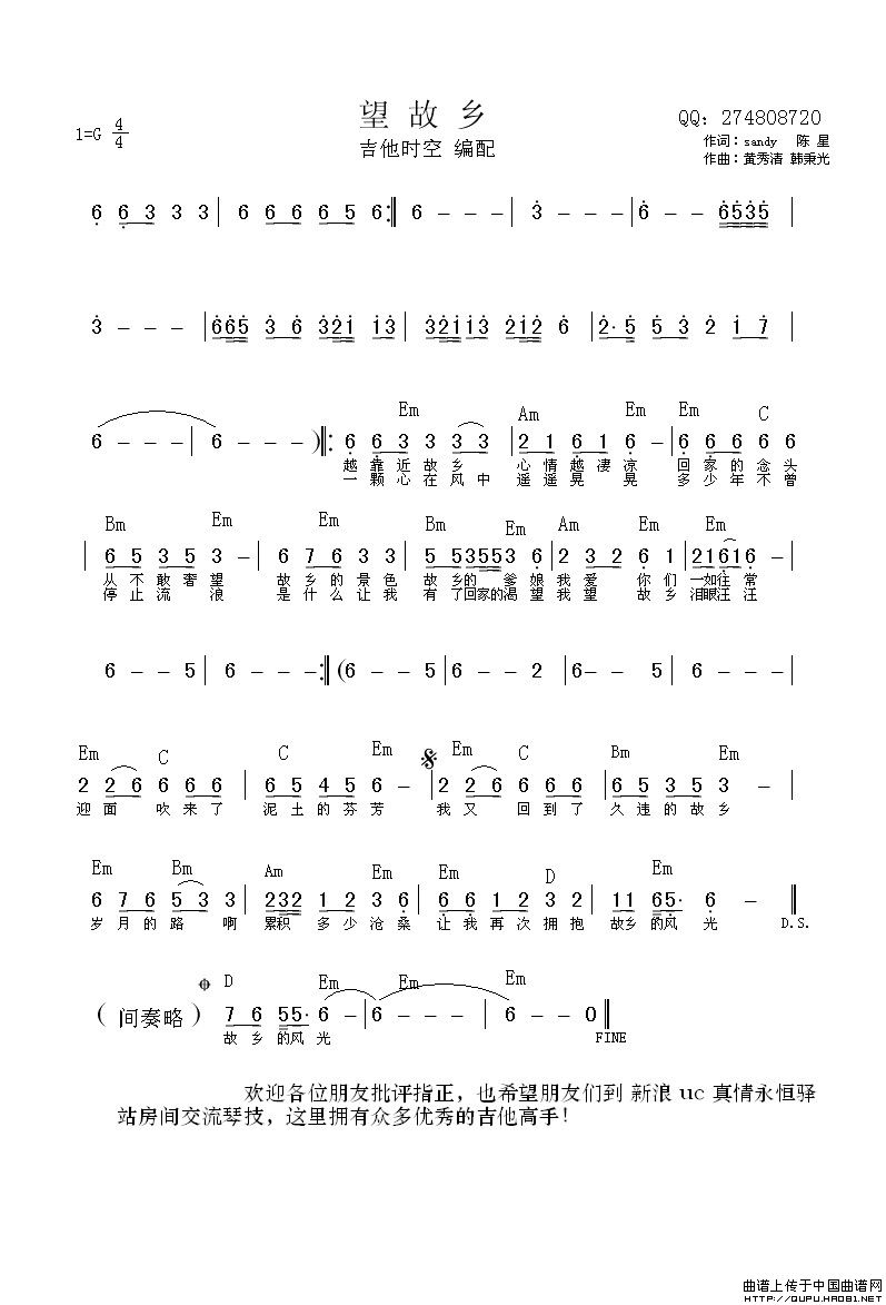 关于《望故乡》曲谱的评论