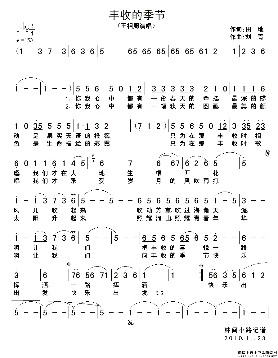 关于《丰收的季节》曲谱的评论