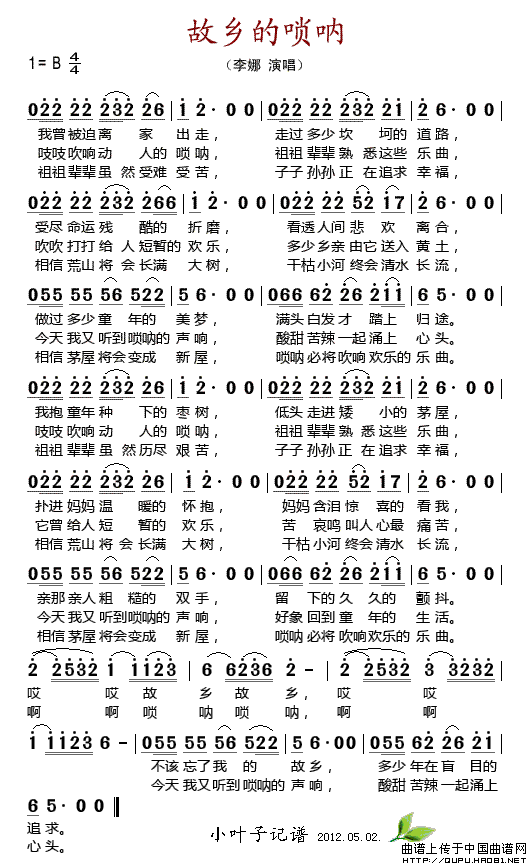 关于《故乡的唢呐》曲谱的评论