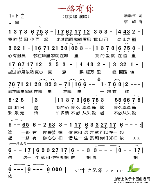 一路有你(唐跃生词 姚峰曲)(1)_原文件名:一路有你1.gif
