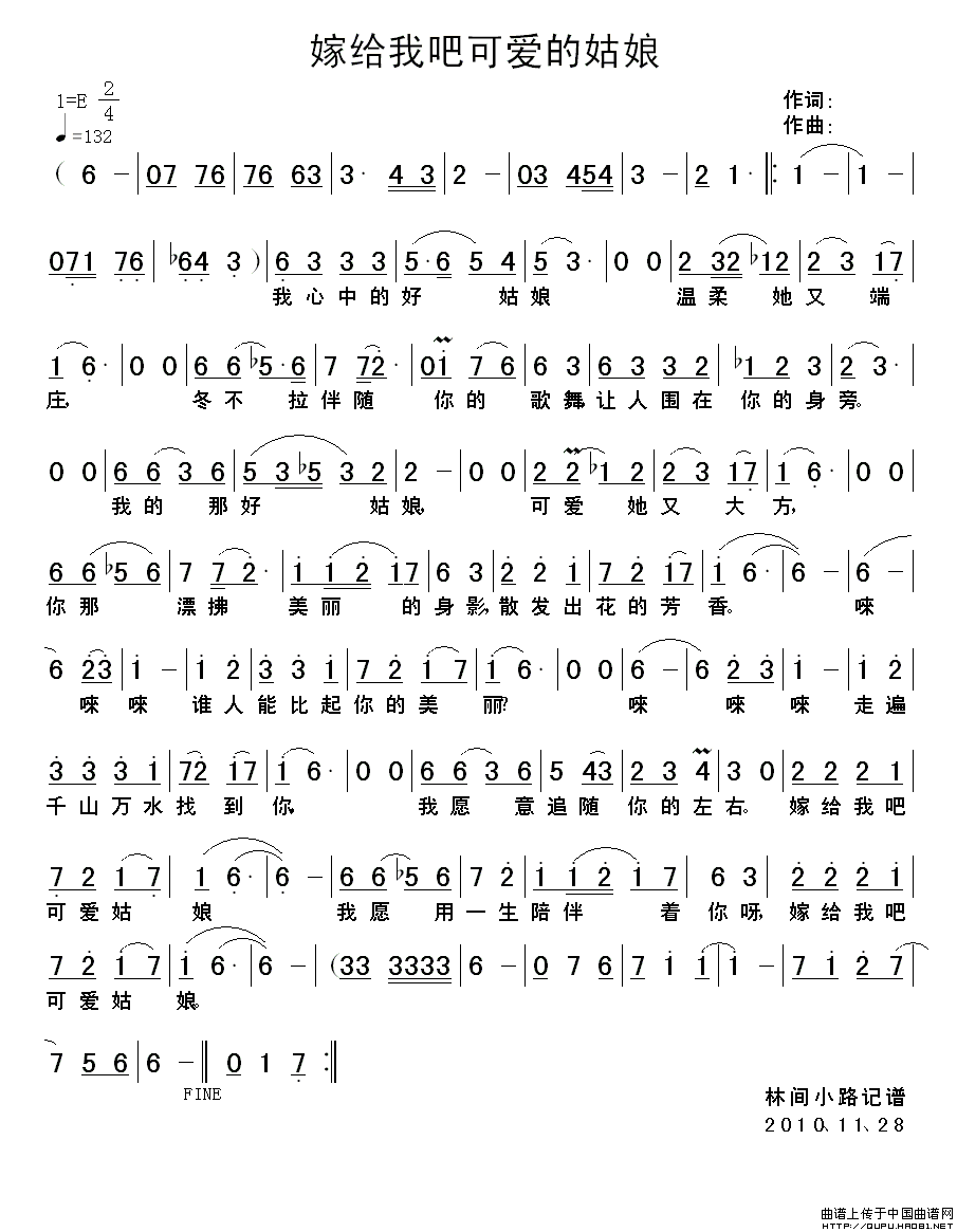 关于《嫁给我吧可爱的姑娘》曲谱的评论