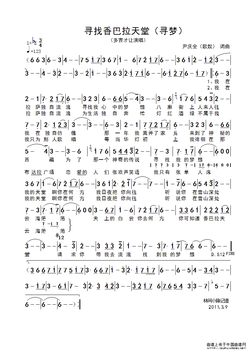 提示:在曲谱图片上单击右键,选择“图片另存为...”即可将曲谱保存到您的电脑中,打印时候可将图片插入到WORD中,调整合适大小打印即可。