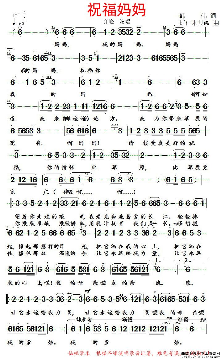 祝福妈妈(韩伟词 斯仁木其德曲)
