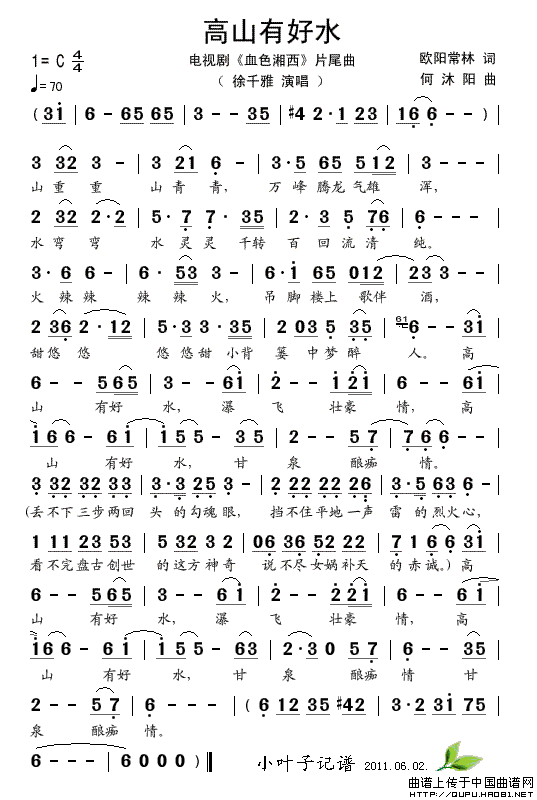 关于《高山有好水》曲谱的评论