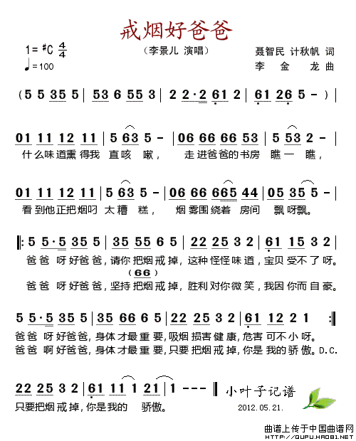 演唱(奏):李景儿 格式:简谱 来源:小叶子记谱 上传:~金沙浪~