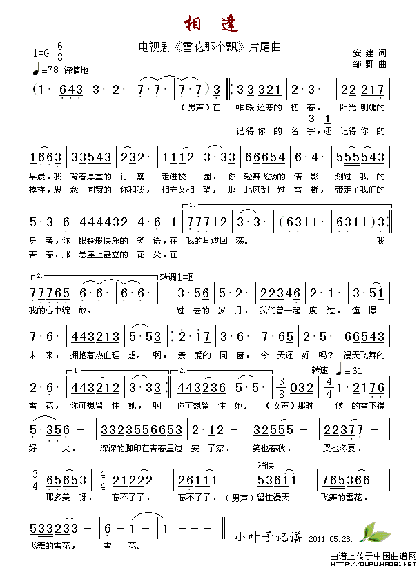 当前位置: 首页 谱友园地 谱友记谱 相逢(电视剧《雪花那个飘》片尾曲)