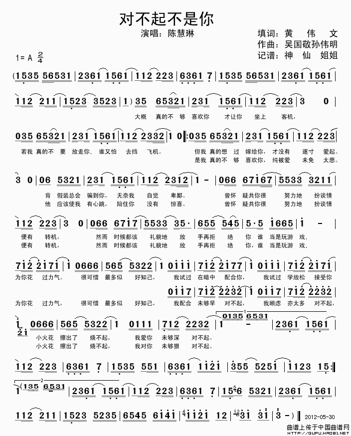 关于《对不起不是你》曲谱的评论