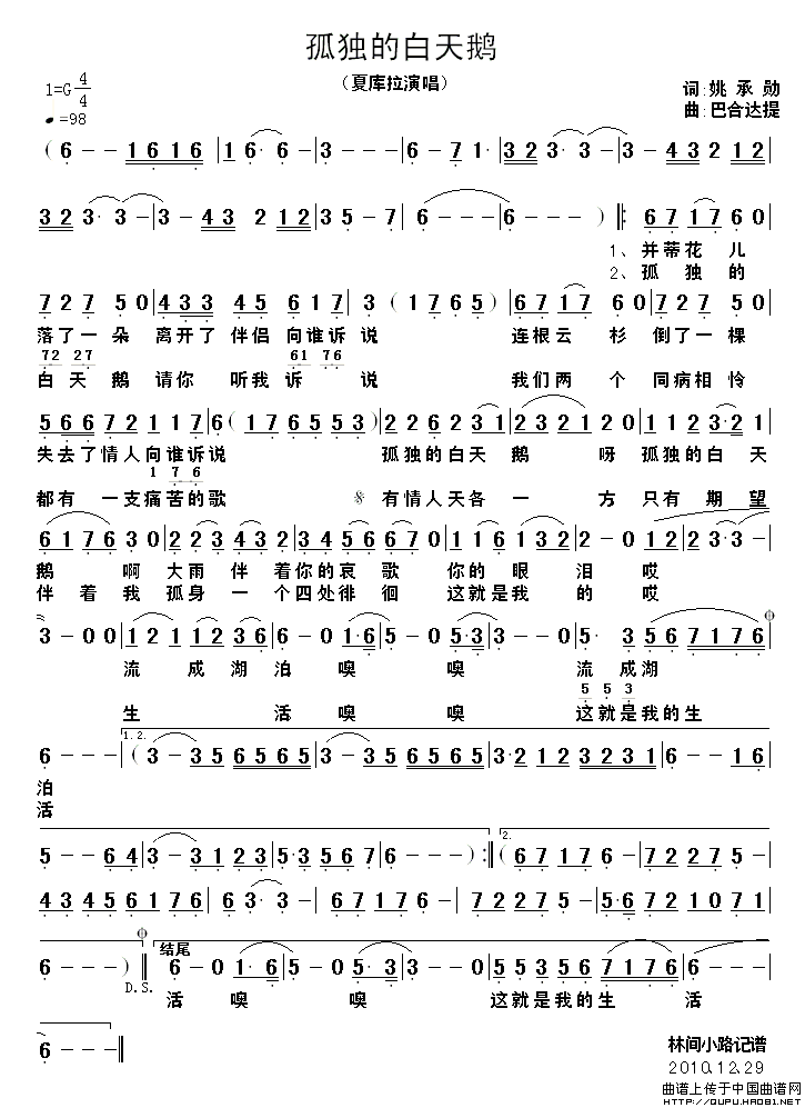 关于《孤独的白天鹅》曲谱的评论