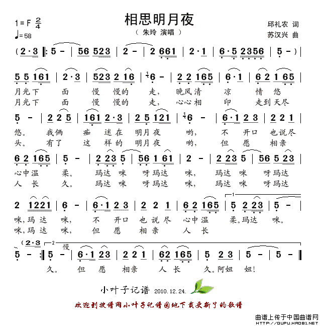 关于《相思明月夜》曲谱的评论