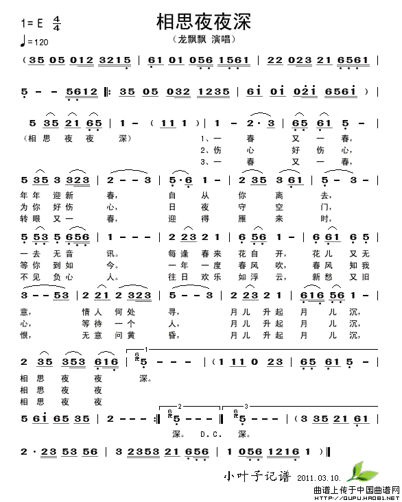 关于《相思夜夜深》曲谱的评论