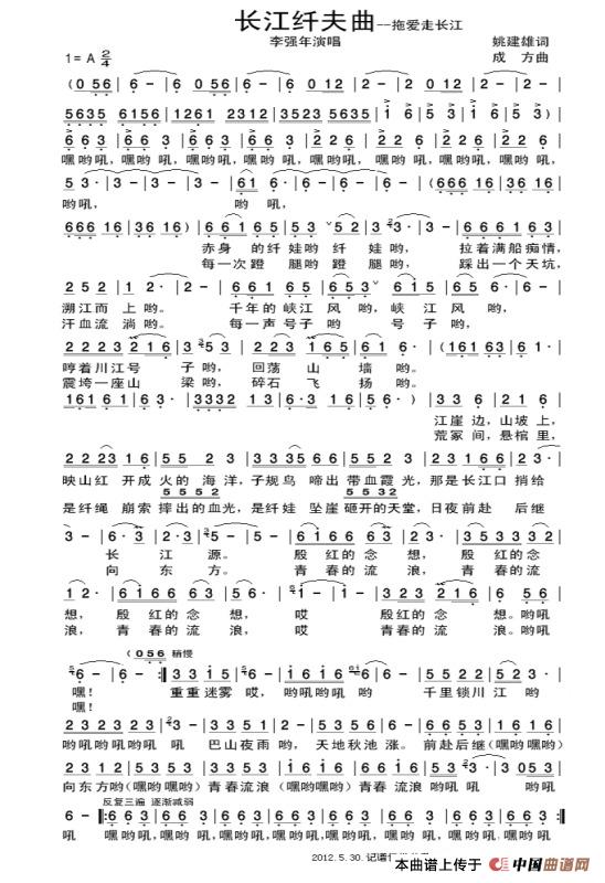词作者说明:随着技术不断发展,机器取代人力,长江纤夫这一工种已经趋于消失。现代人已经难以体会那种日晒雨淋下纤夫日夜拉纤的劳苦,也难以玩味他们劳作的歌声——长江号子,以及他们劳作后的欢欣沉郁。