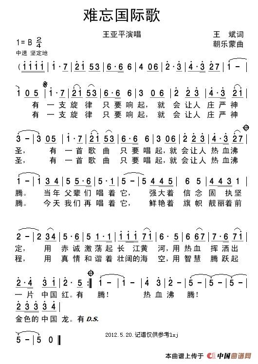 关于《难忘国际歌》曲谱的评论