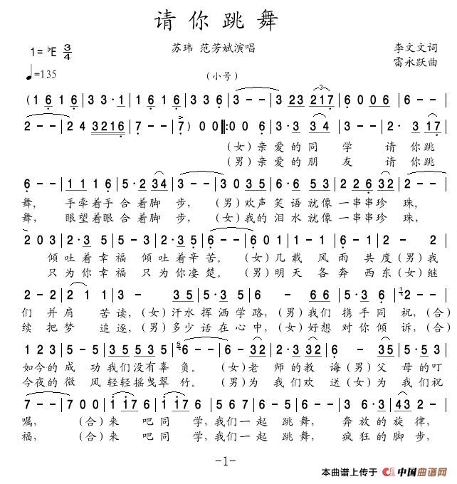 关于《请你跳舞》曲谱的评论
