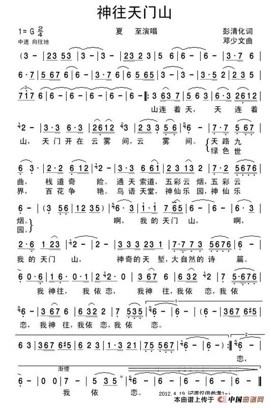 关于《神往天门山》曲谱的评论