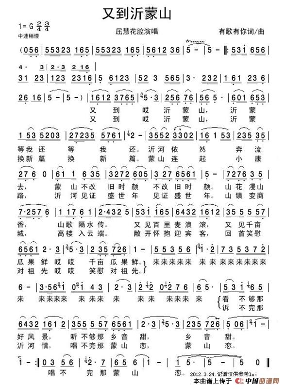 来来来 诉不完那沂河情 唱不完那蒙山恋