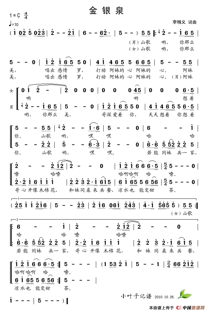 作词:李金义 作曲:李金义 格式:简谱 来源:小叶子记谱 上传:~金沙浪~