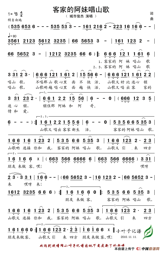 演唱(奏):城市俊杰 格式:简谱 来源:小叶子记谱 上传:~金沙浪~