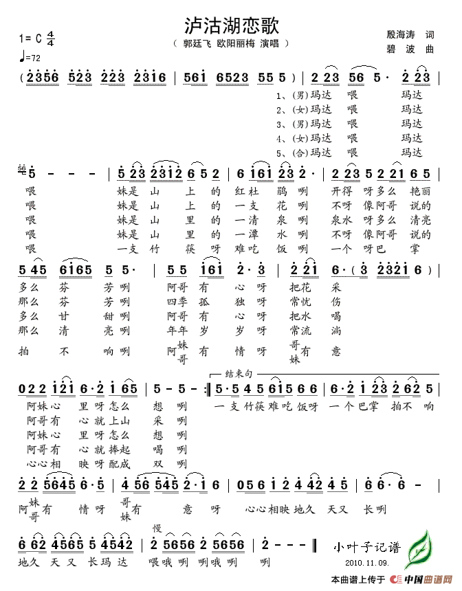 当前位置: 首页 谱友园地 谱友记谱 泸沽湖恋歌(殷海涛词 碧波曲)