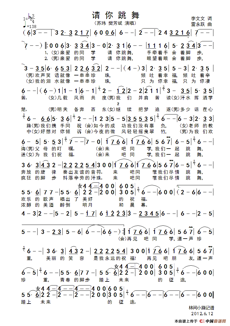 关于《请你跳舞》曲谱的评论